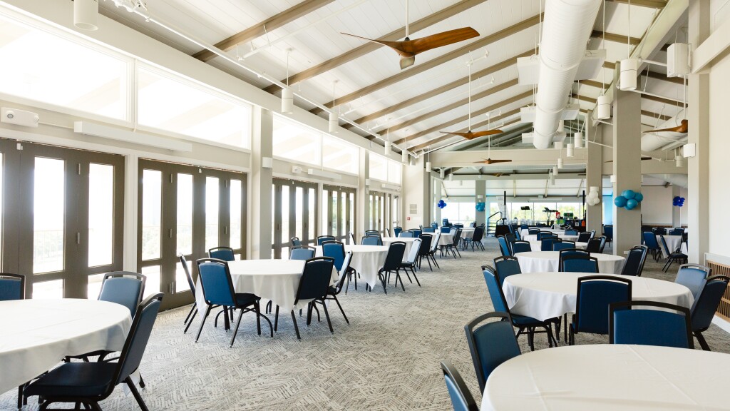 The Pavilion seats up to 180 guests and is perfect for golf tournament banquets, baby showers, and more. Rental fee: $800.