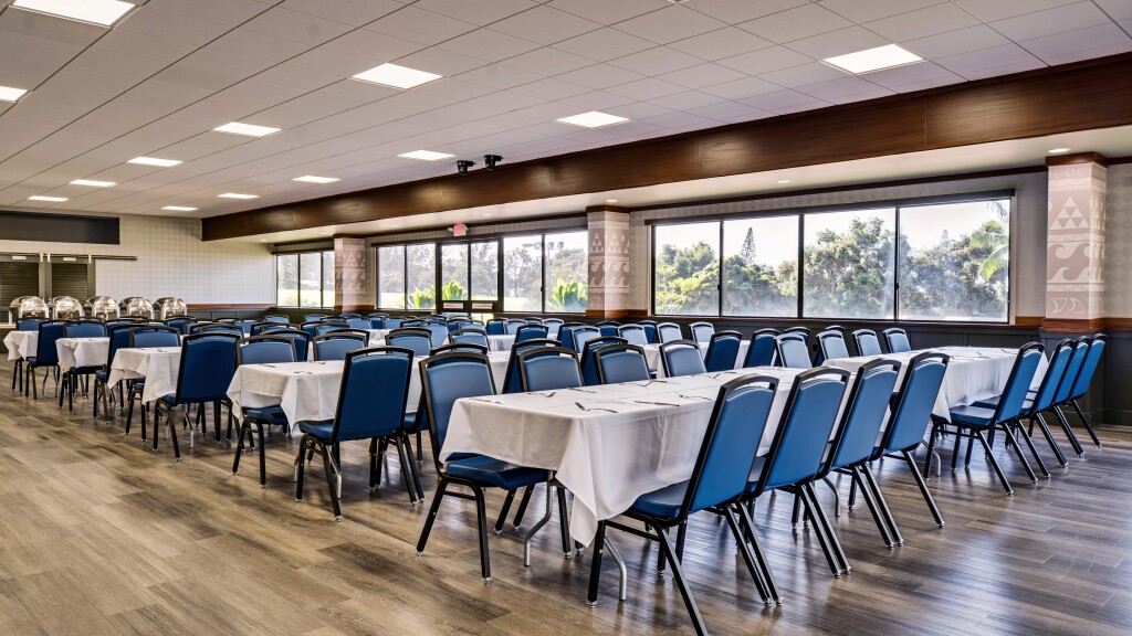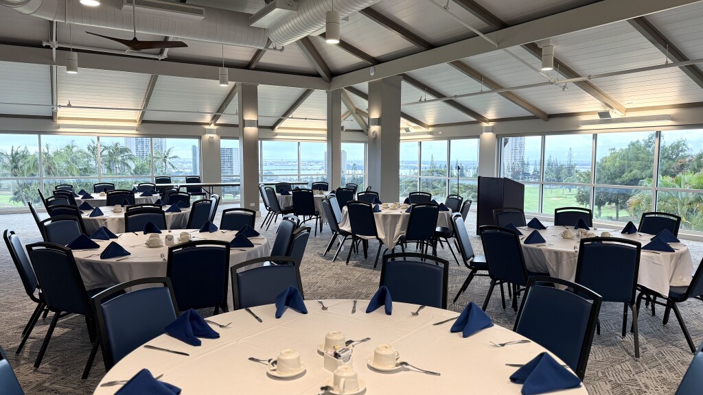 The Pearl Room seats up to 320 guests with an attached lanai, offering breathtaking views of Pearl Harbor and the golf course. Rental fee: $800.