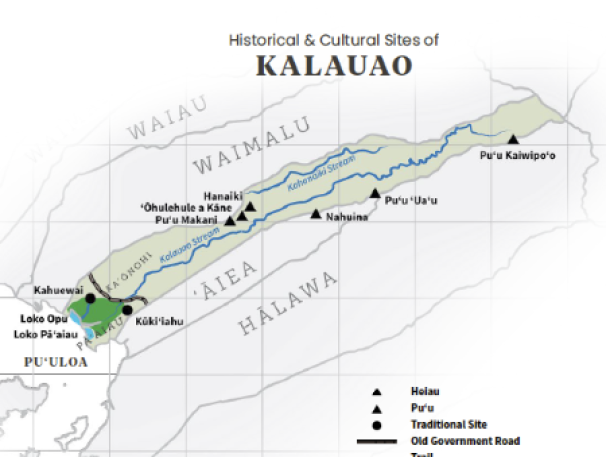 - Kahuewai: is a sacred bathing pond in Kalauao that was guarded and reserved for ali‘i. Furthermore, “hue” is an ancient Hawaiian water calabash. As such, Kahuewai transcends mere relaxation and cleansing; it encapsulates the vital pilina (connection) between water (wai) and the kānaka (people).